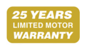 Manufacturer’s limited warranty against defects in materials and manufacture is 25 Year warranty on the motor and 1 year on the rest of the fan. Any damage due to water, physical or electrical are excluded.