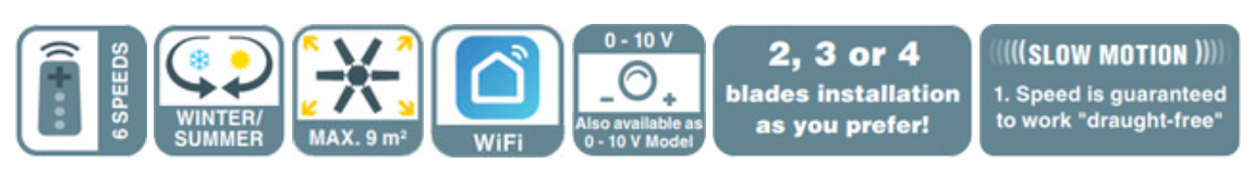 The Casa Eco Neo III is one of the best selling Casa fans in Europe as it ticks all the boxes. As a result it is available in a large number of motor and blade finishes all in 5 blade sizes. Additionally, you can install the no of blades you prefer ie 2,3 or 4 plus it is wifi enabled. The motor is a patented DC low energy fan that provides great airflow coupled with very low noise levels which are below laboratory detectable limits on speed 3 or less. Optional extras available include dimmable LED light kits, drop-rods of 100cm and a wireless wall control. It is also available with 0-10v control to work with hotel GRMS systems.